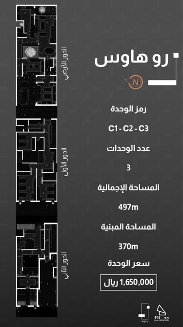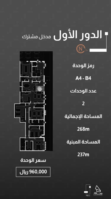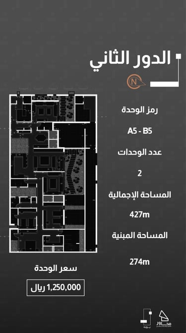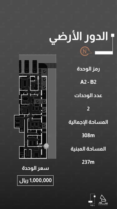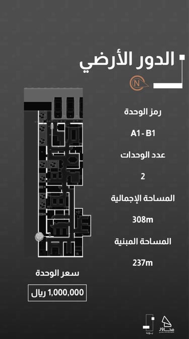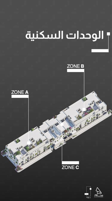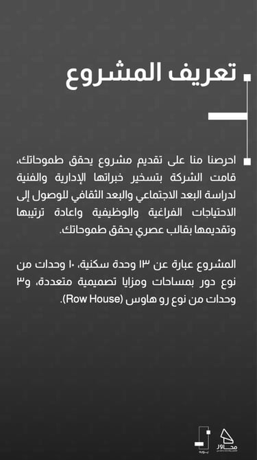 A detailed brochure for the يوبه project, launched by محاور Company in cooperation with